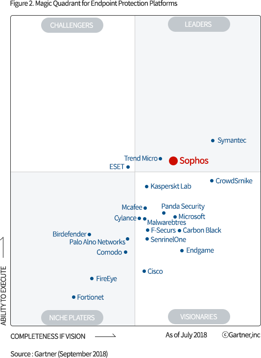 Intercept X를 개발한 Sophos는시스템보안과 네트워크보안 모두 글로벌 리더 그룹에 포함되며,